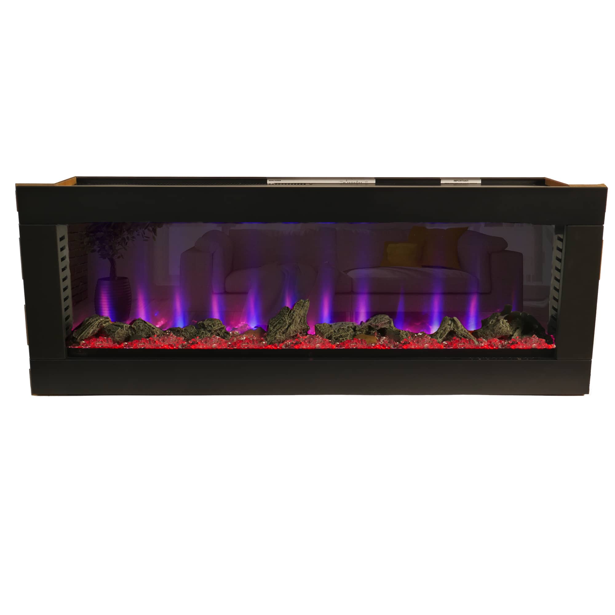 The Bluegrass Living 50’’ See Through Electric Fireplace combines the breathtaking effect of a contemporary see through fireplace with exquisite see through flame technology, adding warmth and a modern feel to just about any space. Fit for recessed installation, this unit does not require any venting and is a perfect choice for any commercial or residential area.
