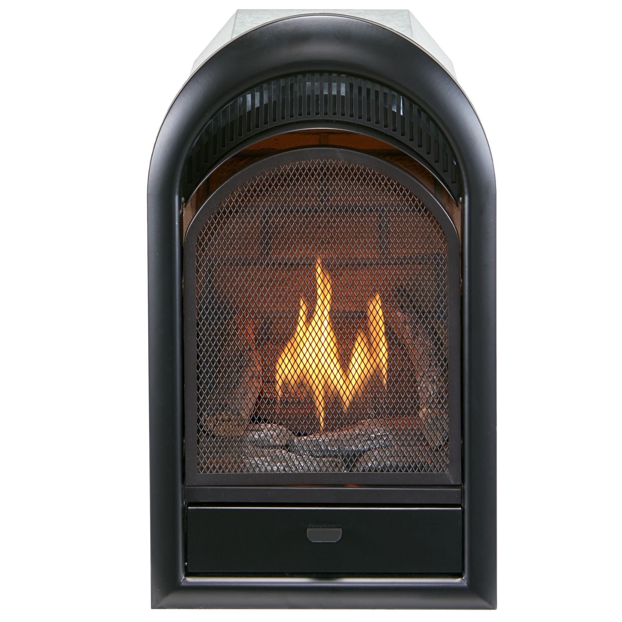This Bluegrass Living ventless zero clearance fireplace insert is the perfect addition to your den, living room, or kitchen. Featuring four hand-painted ceramic fiber logs for a realistic look and yellow dancing flames, this stylish arched insert can seamlessly fit into any home decor to illuminate your space with the classic elegance of a fireplace, without the mess. Using Liquid Propane the unit can generate up to 10,000 BTU of cost-effective heat to keep you warm.