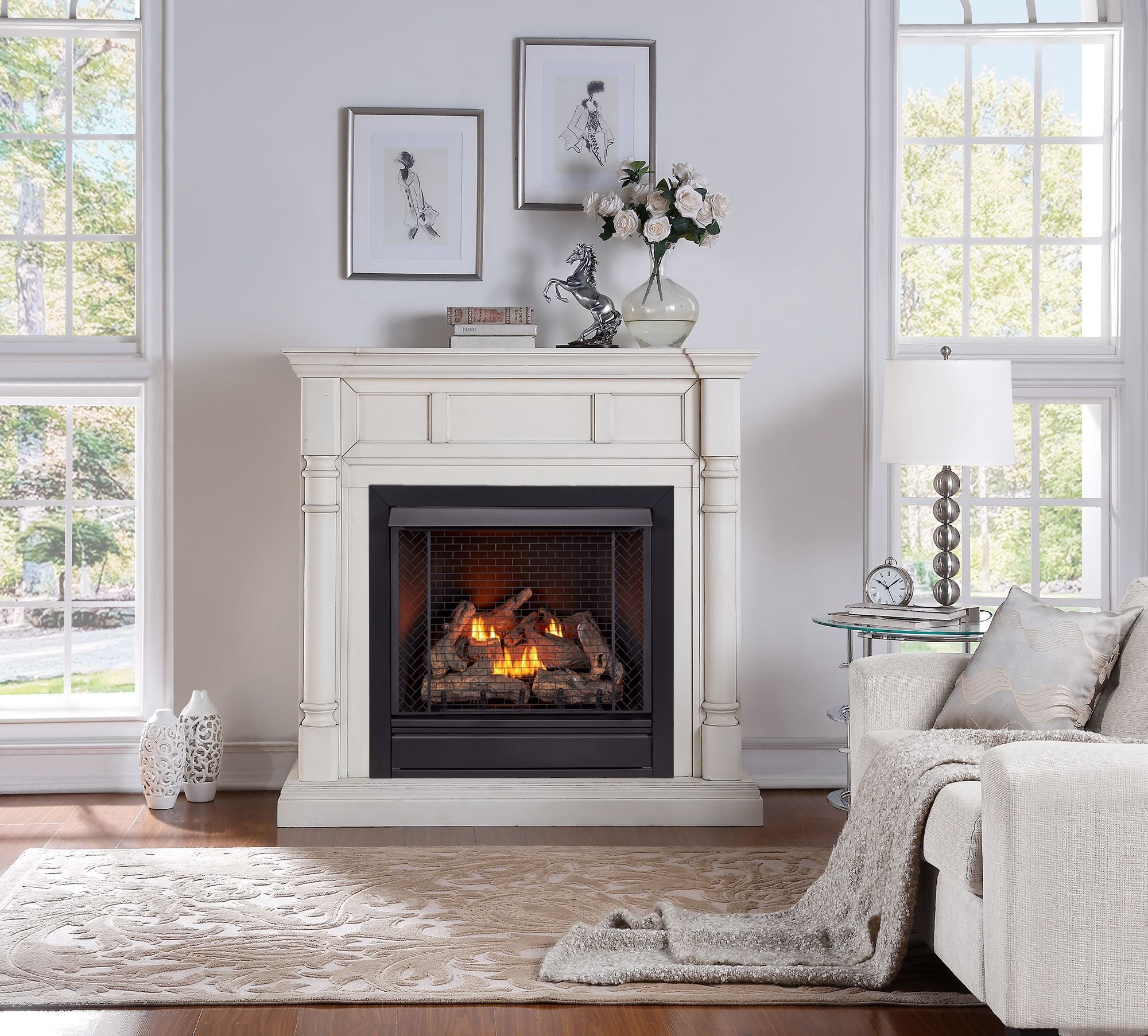 The Bluegrass Living B500RTN-2-AW provides a beautiful and realistic flame. It features realistic fiber ceramic logs for a stunning home experience. Make your house feel like home with our Furniture Grade Quality Fireplace Mantel and Full-Size Bluegrass Living Ventless Natural Gas Fireplace Insert. The product is made to produce up to 32,000 BTU of heat, enough to heat 1,500 square feet of living space. The antique white finish creates a nice contrast that completes the look of your home.
