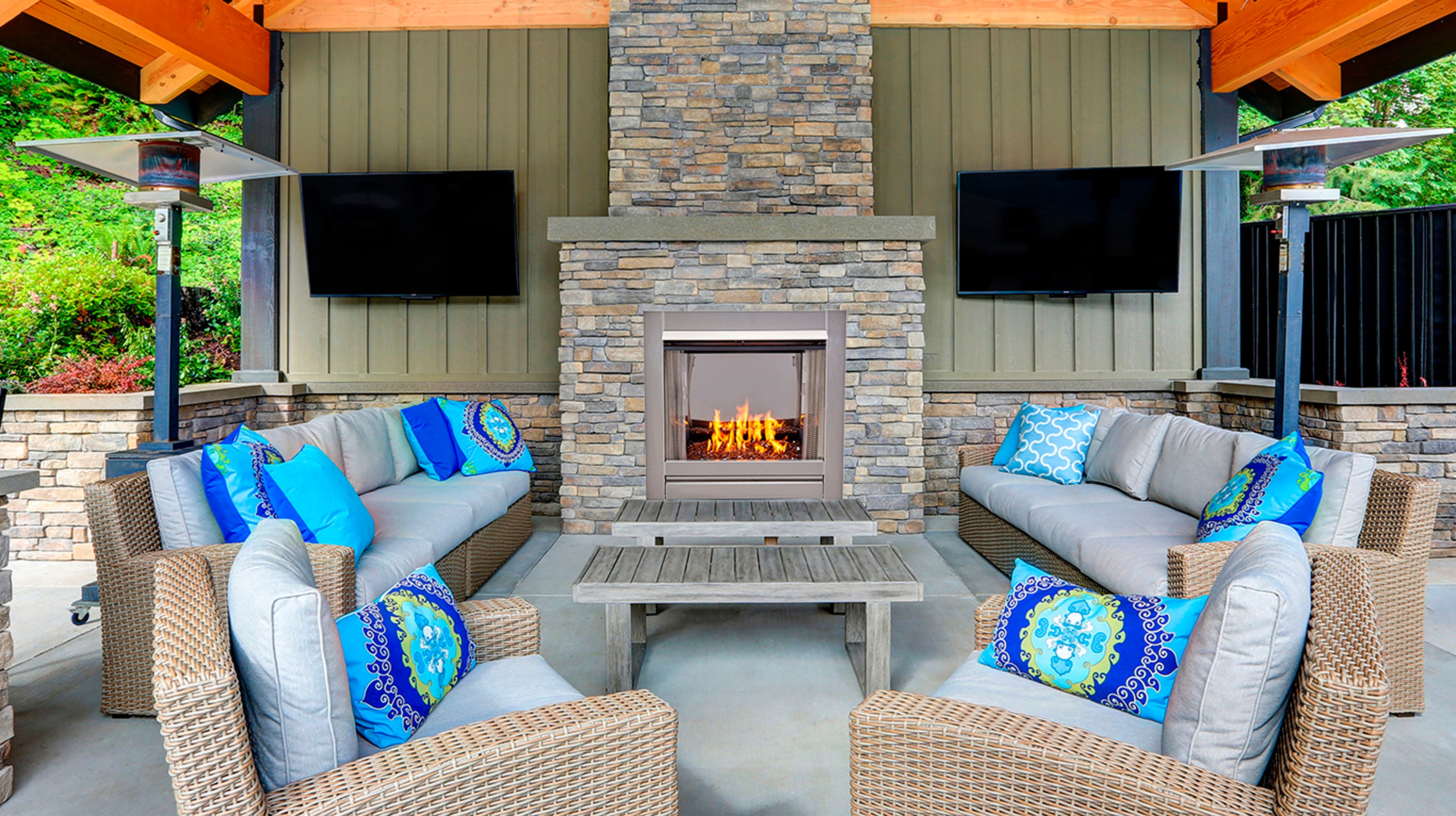 You and your family members can relax and enjoy your new outdoor living space while you watch the flames dancing through the large bed of reflective copper fire glass media that comes standard with your fireplace.