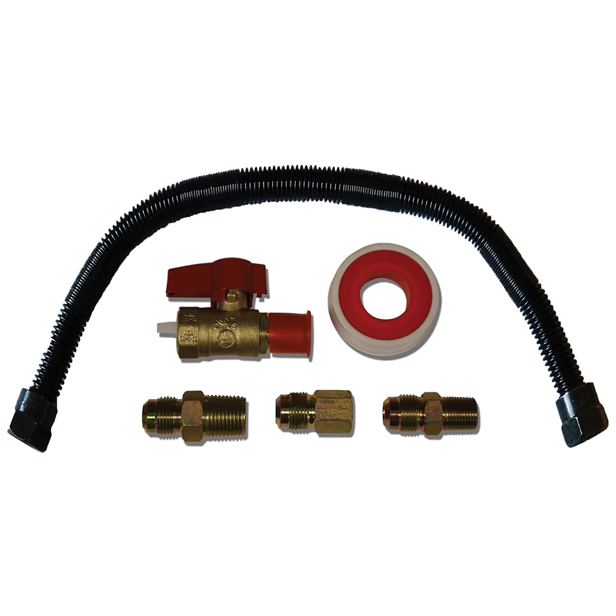 This Whisper Free Universal Gas Appliance Hook-up Kit works with all vent-free gas heaters, gas logs, gas fireplaces, gas stoves and garage heaters. Engineered for high BTU applications, offset coils have been added to provide silent gas flow in high volume gas applications. Eliminates whistling noise caused by high BTU gas flows. The high temperature black coating on the flexible gas connector provides a low visibility installation.