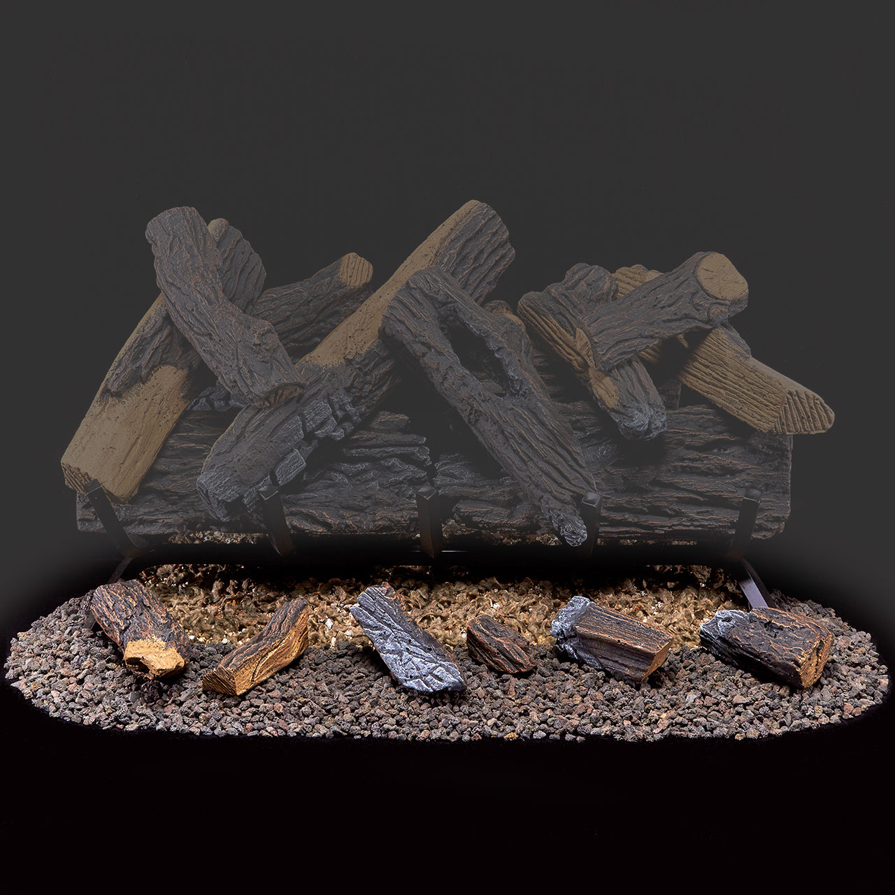 Duluth Forge’s Ember Log Bed Kit helps enhance the look of both Ventless or Vented Gas Log Sets. Place the Ember Log pieces around your existing Gas Log Set to create a fuller, more realistic fireplace hearth.