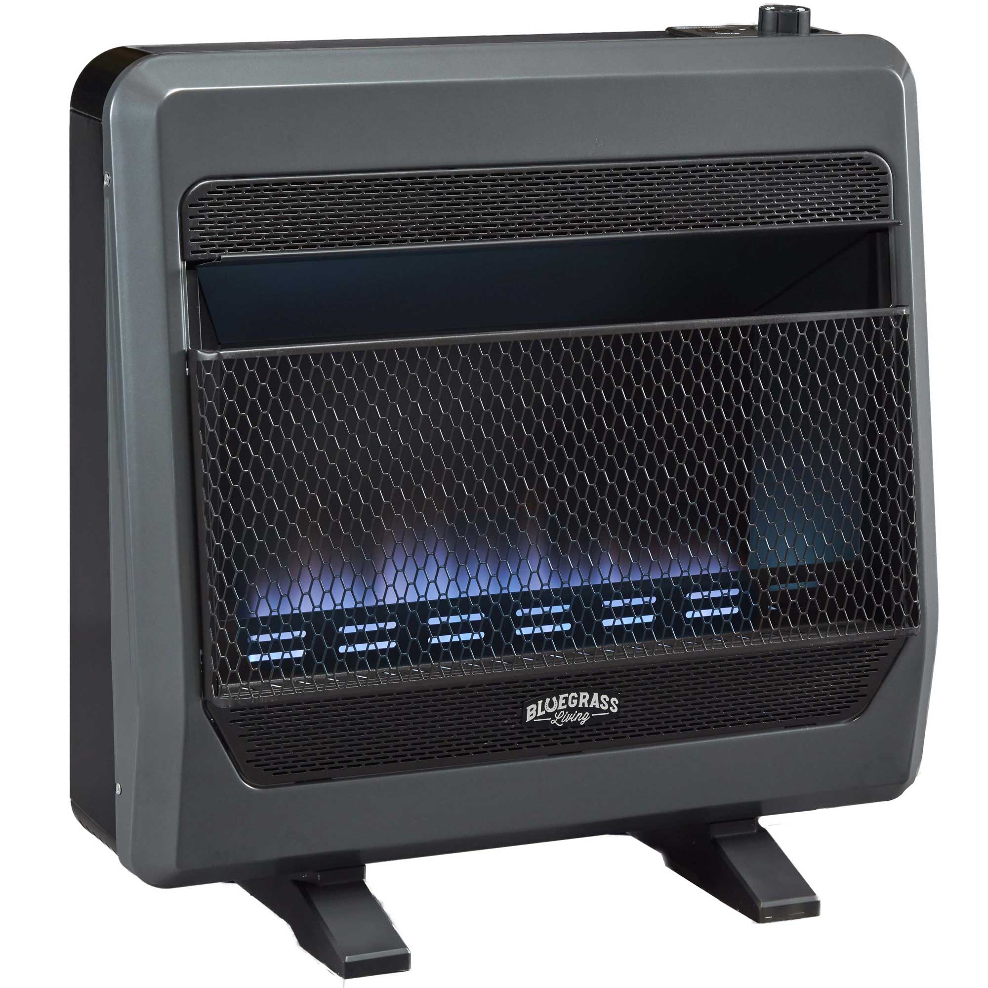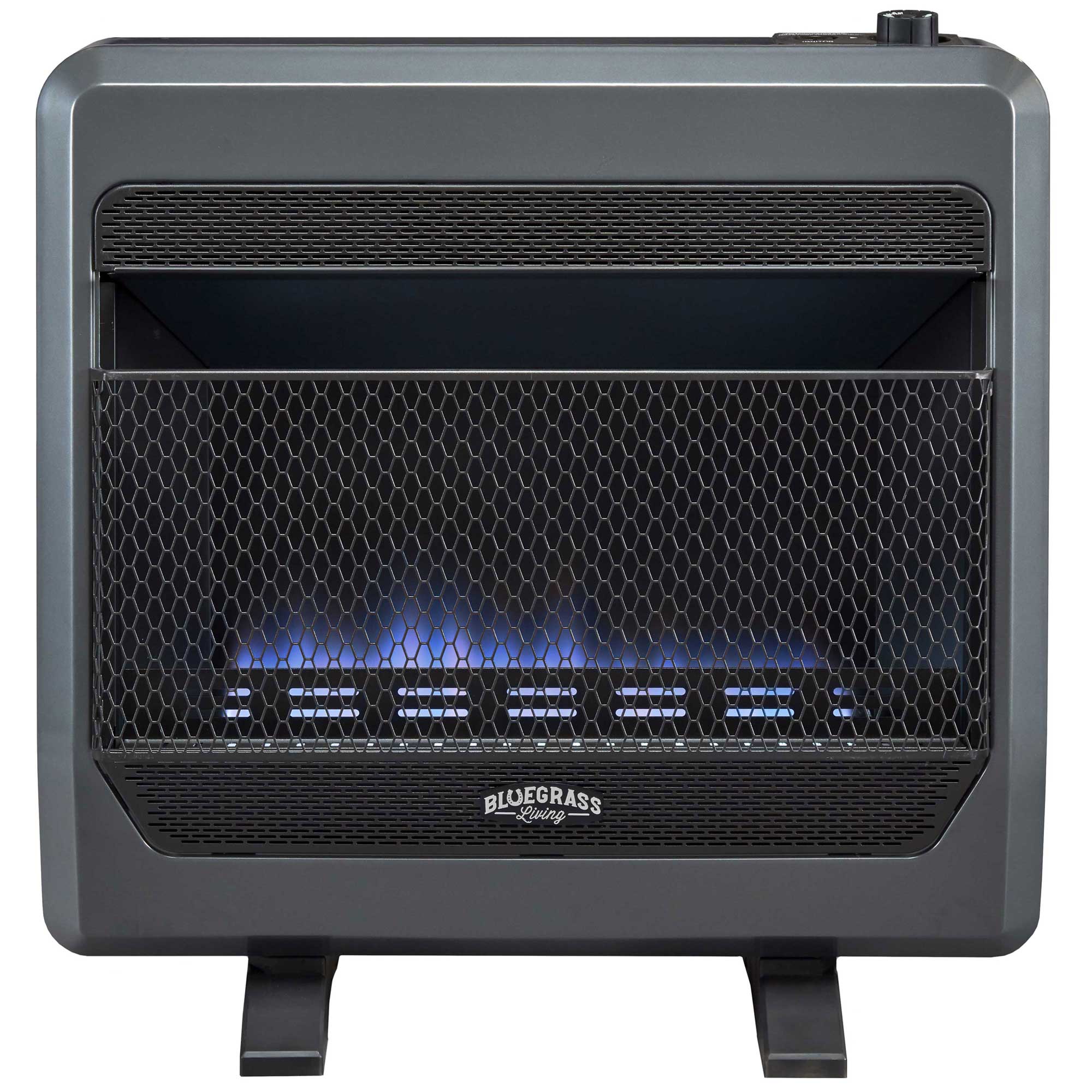 The Bluegrass Living ventless blue flame gas wall space heater operates on Natural Gas and gives you 30,000 Maximum BTU of reliable supplemental heat that can heat up to 1,400 sq. ft of living space. The space heater is perfect for not only just taking the chill out of the room but also for keeping your area warm on even the coldest winter days.