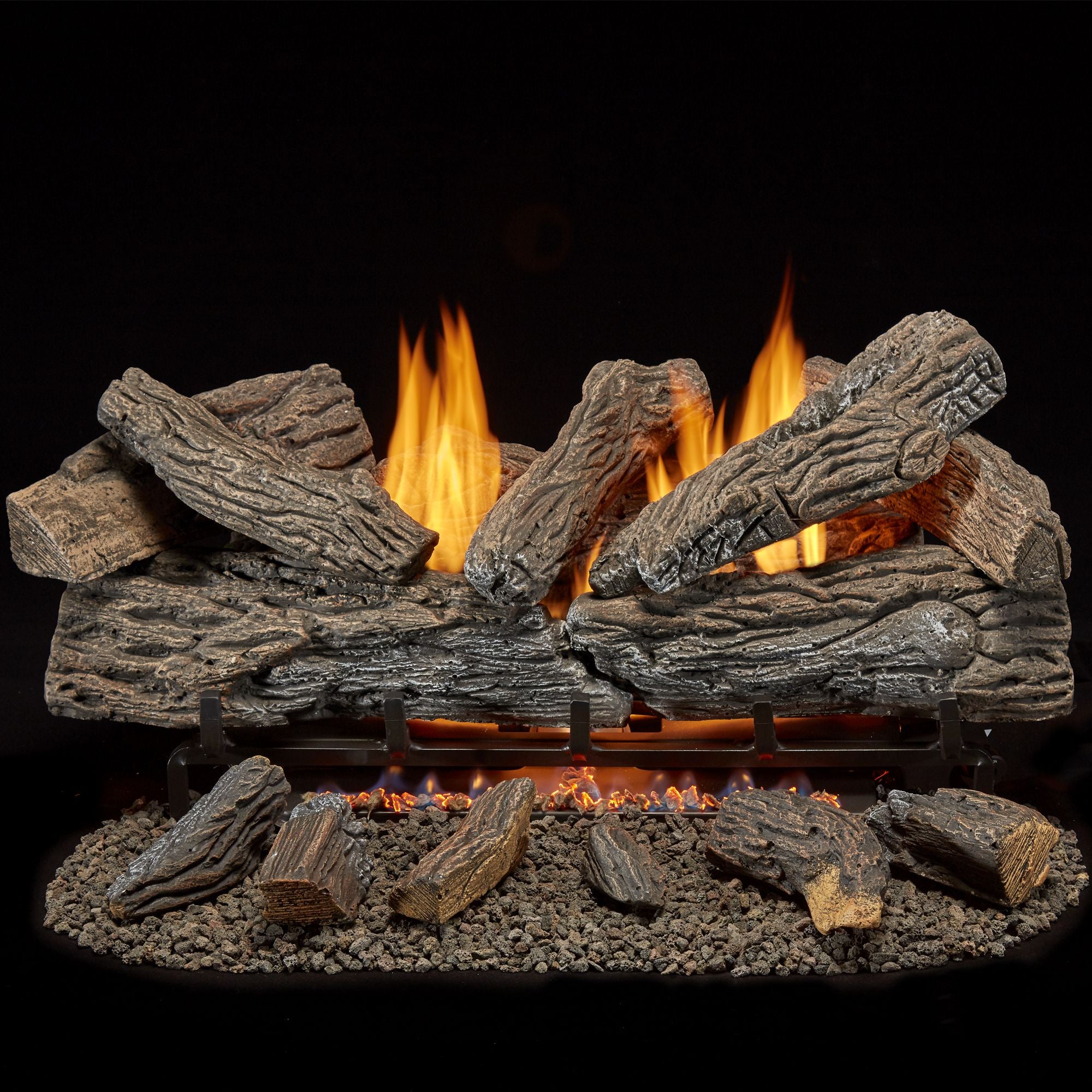 The Bluegrass Living Stacked Oak Vent Free Log runs off of Natural Gas. This unique log set offers a natural look and feel of a real wood-burning fireplace. The log set was developed from real wood to reflect a split stack with focus on blending bark and split features along with charring to create an exquisite look to your fireplace and magnify the beauty of your home. The Thermostatic Remote Control feature can easily regulate the 32,000 BTU to create the perfect heat setting for your home.